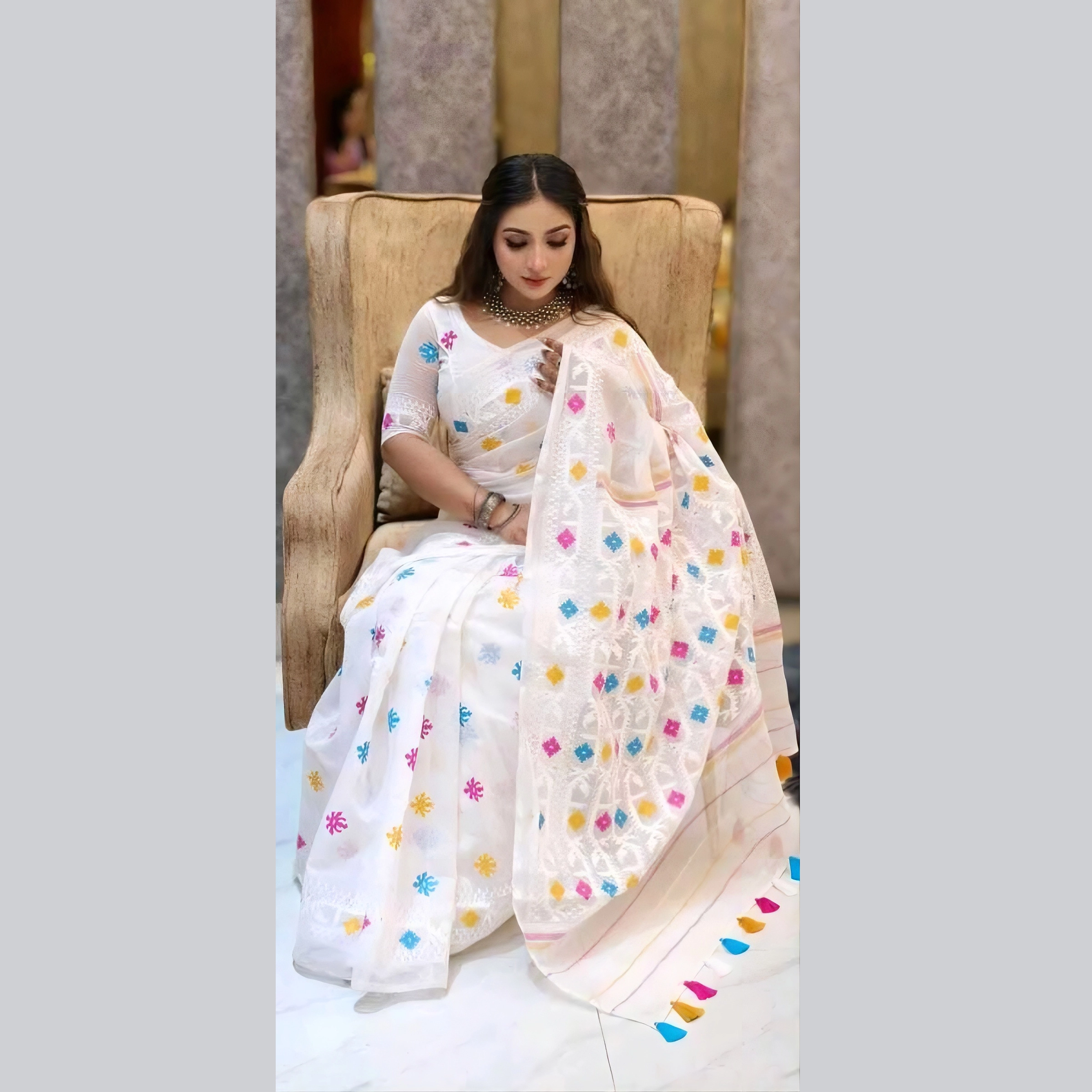 পুরানো আভিজাত্য যখন আধুনিক আরামের সাথে মিশে যায়, তখন তৈরি হয় অনন্য কিছু। আমাদের এই হাফ সিল্ক জামদানি প্রিন্ট শাড়িটি ঠিক তেমনই—যা আপনার প্রতিদিনের স্টাইলে যোগ করবে এক নতুন মাত্রা।